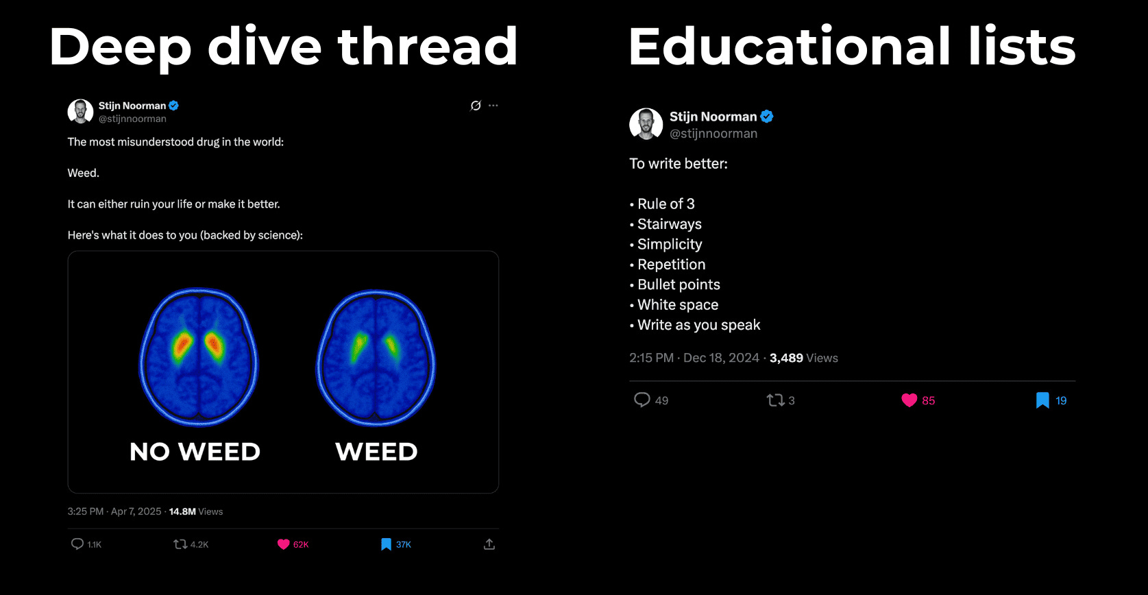 For example: deep dive threads or educational lists.