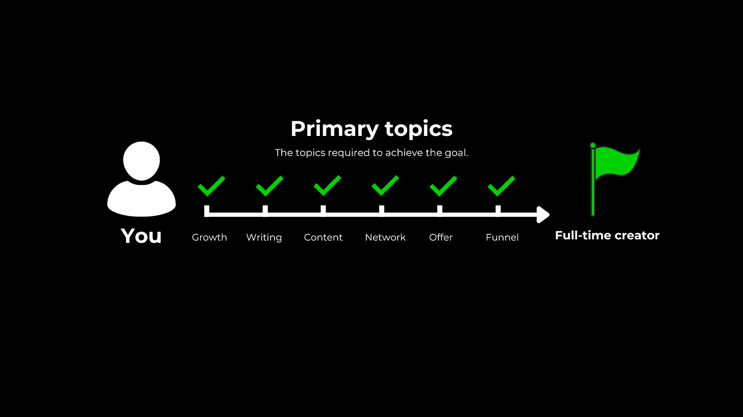 Topics like mindset, time management, and habit-building are secondary topics.