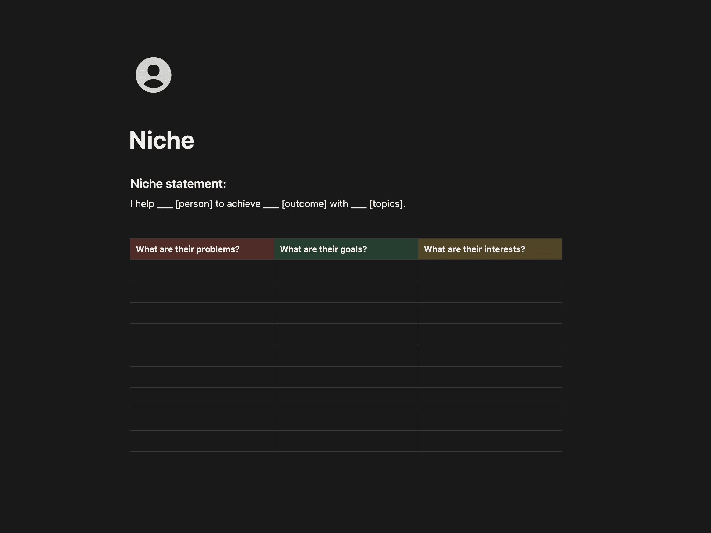 Niche = a group of people with the same problems who want the same outcome.